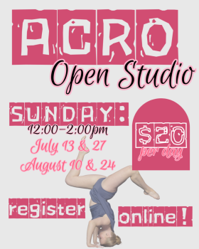 These sessions are for those that are wanting some extra studio time and space to work on different skills. Someone will be onsite to help when needed but staff will be limited. We will have all three studio rooms open and they will be equipped with ballet bars, turning boards, stretching bands, gymnastics mats, air tracks, etc.